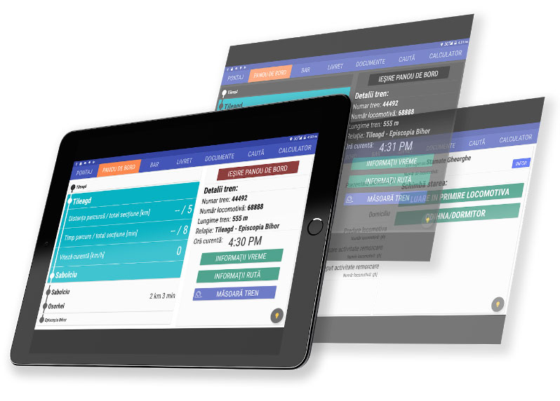 - Railway app to gather train operators presence data, location data and help them on their daily tasks with documents, real-time location and route data, etc.