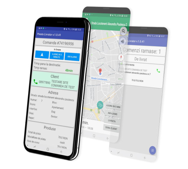 The Driver App allows the delivery agent to manage his orders, is integrated with navigation apps like Google Maps or Waze for easy routing and gives real-time tracking information to the client.